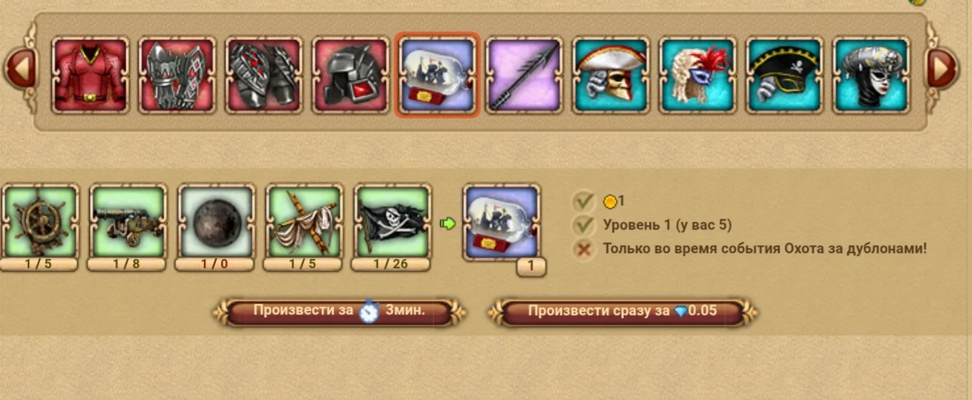 Я предлагаю ещё сделать крафт не только во время события "охота за дублонами". Событие заканчивается неожиданно и крафтить из накопленных дублонов уже не представляется возможным.